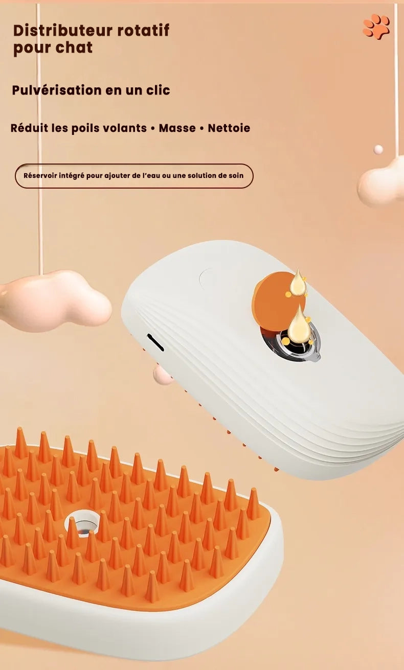 Brosse Vapeur 3-en-1 Rechargeable pour Chat – Nettoie, Démêle & Masse